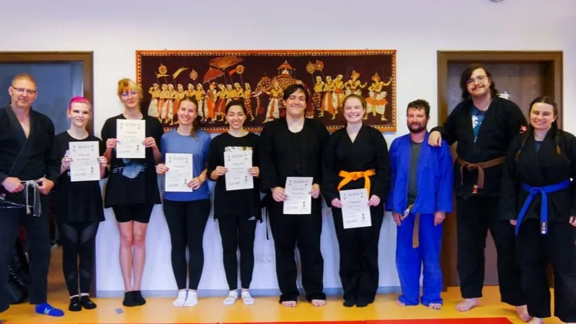 Bei uns kannst du effektive Selbstverteidigung durch eine Vielzahl verschiedener Techniken lernen. Wir trainieren das ganze Jahr über und es werden auch Kurse über den Hochschulsport der Uni Bamberg angeboten. Ob Studenten oder Zivilisten, bei uns sind alle willkommen. Außerdem gibt es die Möglichkeit bei uns Gürtelprüfungen abzulegen.